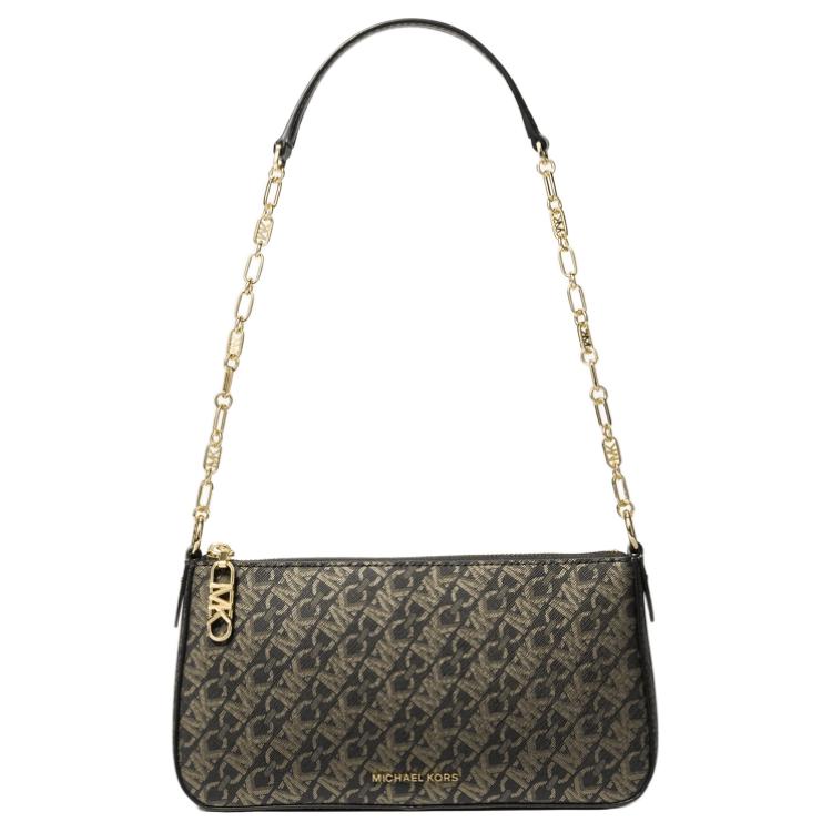 Michael Kors MK Empire Logo Print Zip Closure Faux Leather Crossbody Shoulder Bag Medium Women bags Black Gold 32F4G8EW6B-038 — купить товар онлайн с бесплатной доставкой по всему миру!
