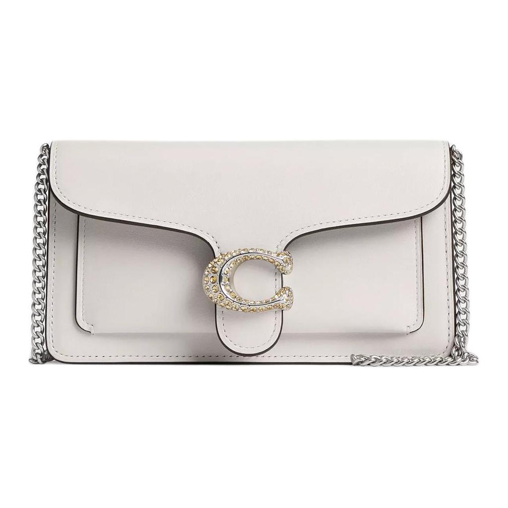 Coach Полосатая 20 Сумка-кроссбоди на плечо Маленькая из телячьей кожи с клапаном и съемной цепочкой Женские сумки Меловой-Белый CX245-LHCHK