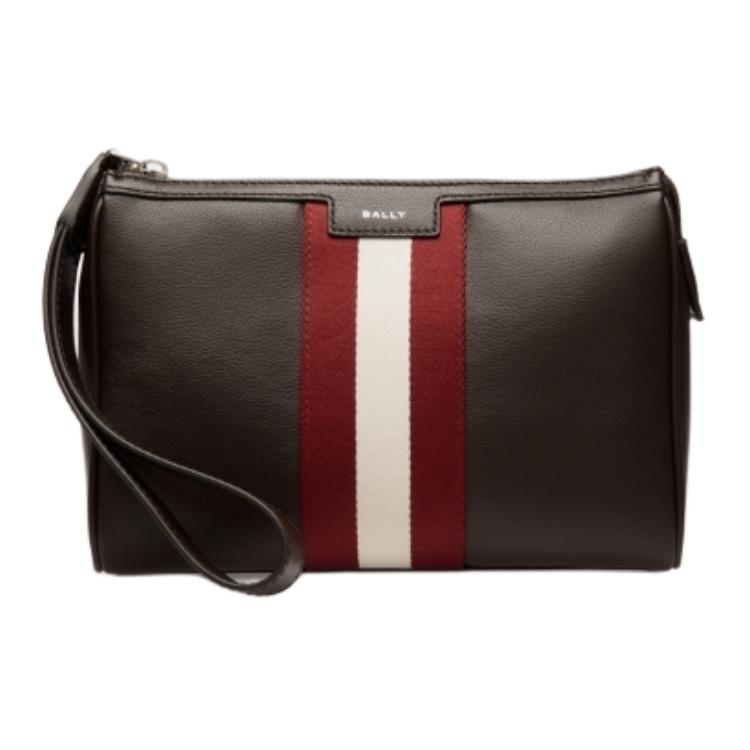 Bally Color Block Letter Logo Leather Clutch Men clutch Ebony Red White 6310596