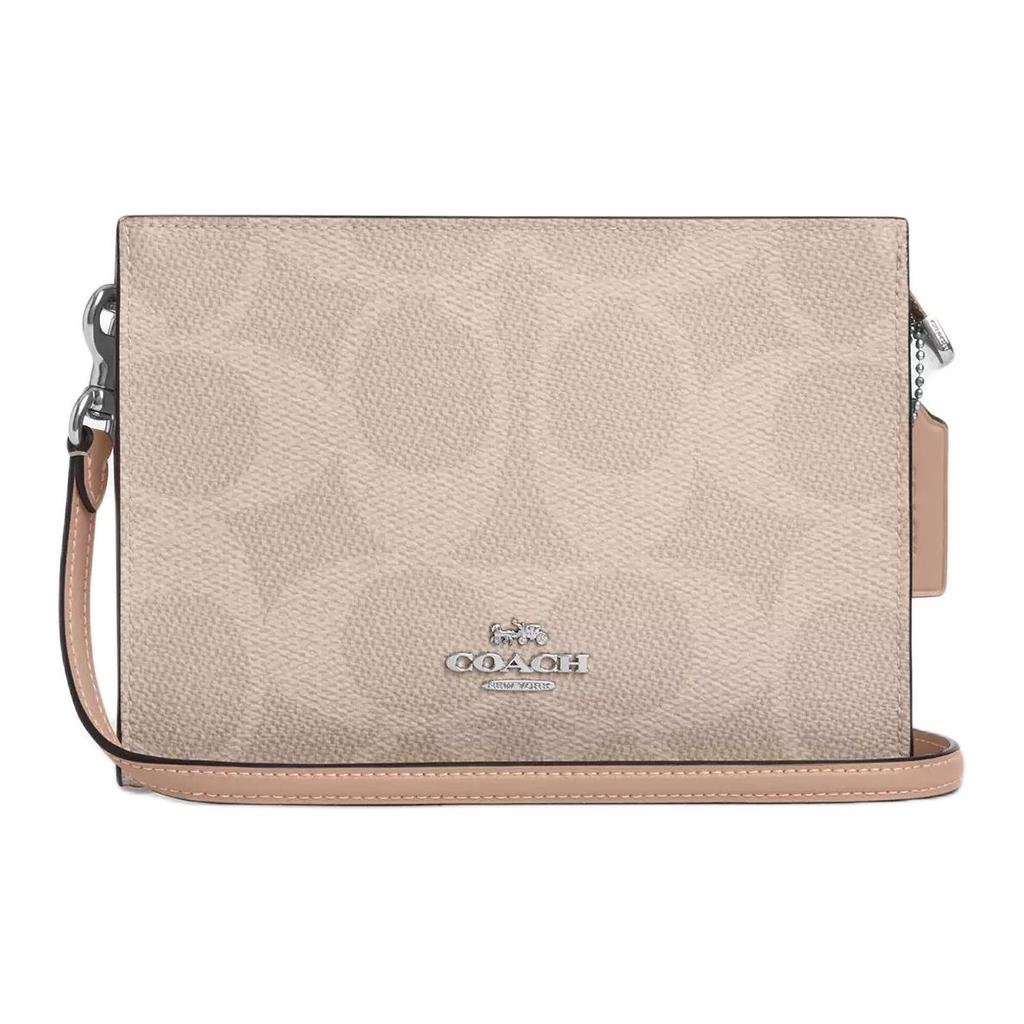 Coach Signature Canvas 20 Slim Color Block Pattern Chain Coated Canvas Crossbody Shoulder Bag Small Women bags Silver Beige Brown CAR12-SVPWH — купить товар онлайн с бесплатной доставкой по всему миру!