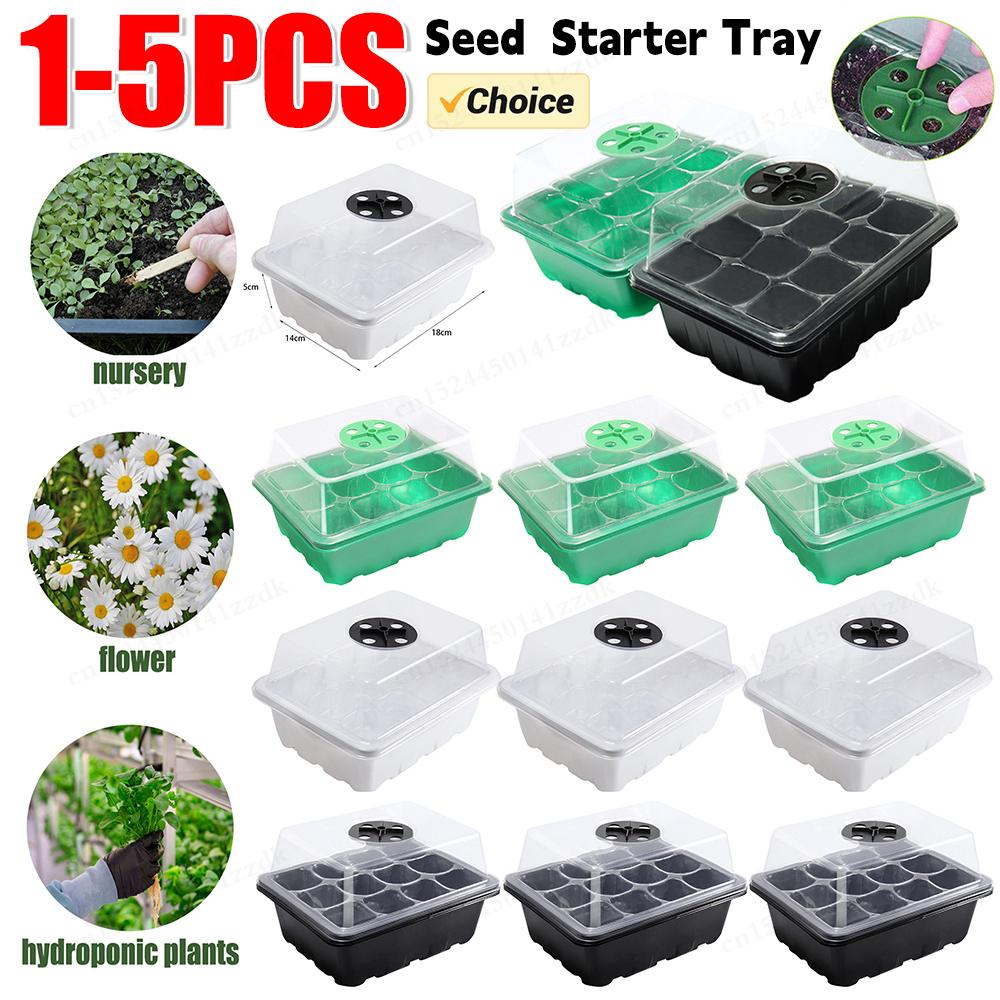 1-5pcs Plants Seed Starter Trays with Humidity Dome 12 Holes Per Tray Nursery Pots Lights For Home Plant Greenhouse Growing Pot
