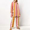 Этот набор, выполненный в ярком геометрическом принте зеленого, синего и белого цветов, привносит современный художественный стиль в ваш гардероб.. Легкая ткань приятно ощущается на коже, обеспечивая комфорт в течение всего дня, будь то бранч или обычная прогулка.
