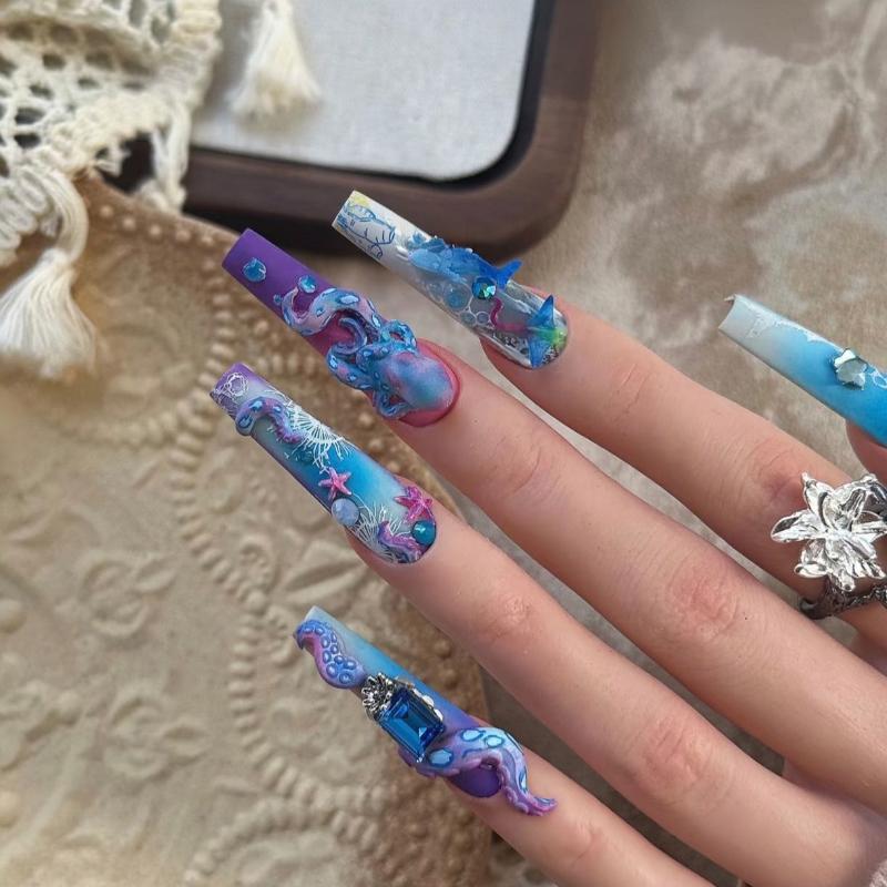 3D Форма для ногтей Глубокий морской синий Кольцо Осьминог Шаблоны для стемпинга УФ Гель-лак Искусство Форма Силиконовый Инструмент для лепки DIY Дизайн Шарм для ногтей