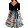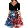 Women's Casual Fashion V-neck Retro Short-sleeved Dress With Flag Independence Day Print — купить товар онлайн с бесплатной доставкой по всему миру!