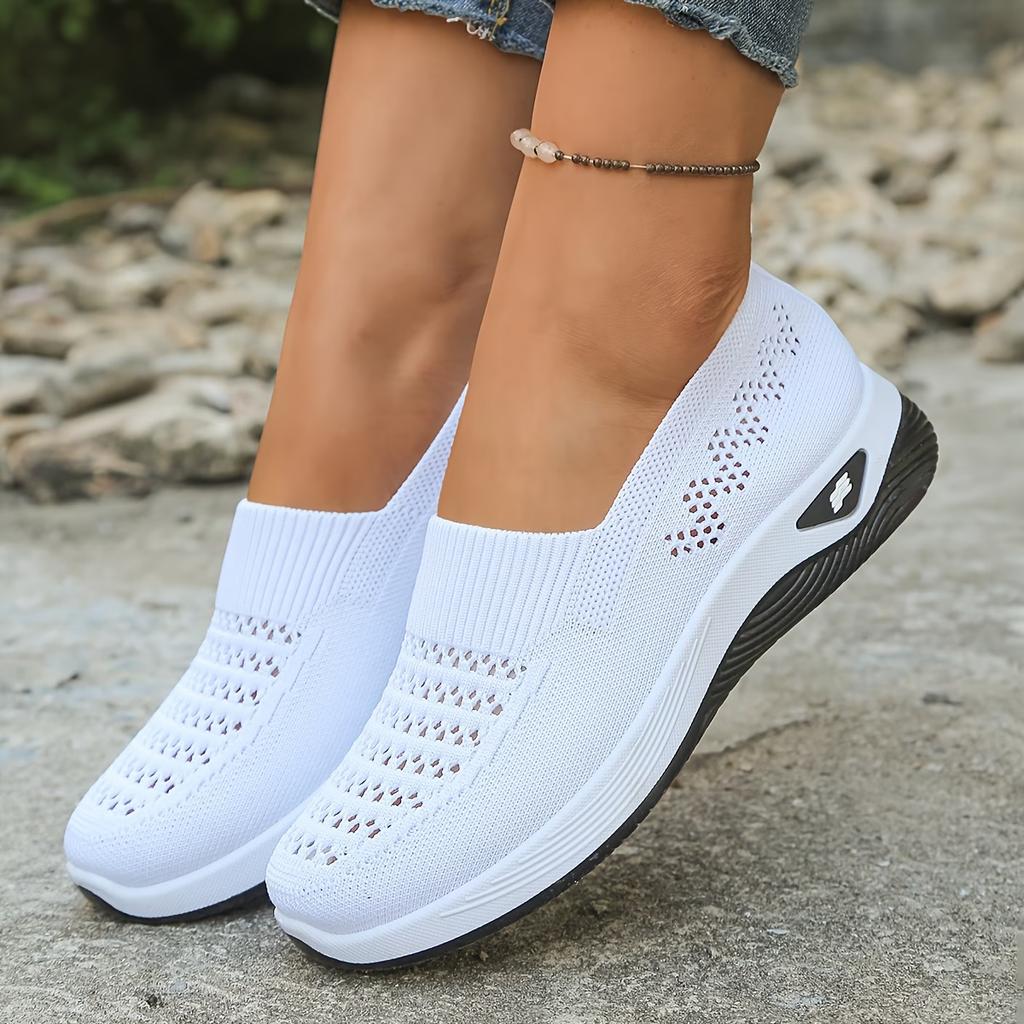 Женские дышащие слипоны на плоской подошве с мягкой подошвой - Легкие кроссовки для любого сезона, подходящие для ходьбы, ежедневной поездки на работу, удобная повседневная обувь