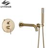 Matte Black Bathroom Shower Systerm Bathtub Faucet Wall Mount Brush Gold 2 Ways Bathtub Mixer Shower Set Mixer Tap