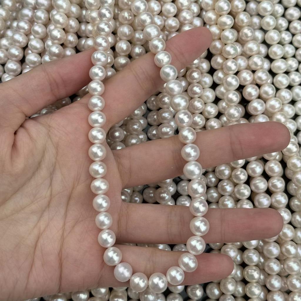 1 нить, Белые натуральные пресноводные жемчужины, Ручная работа, Почти круглые жемчужные бусины для изготовления украшений, DIY поделки (Бусины 7,5-8,5 мм, Длина 36 см) — купить товар онлайн с бесплатной доставкой по всему миру!