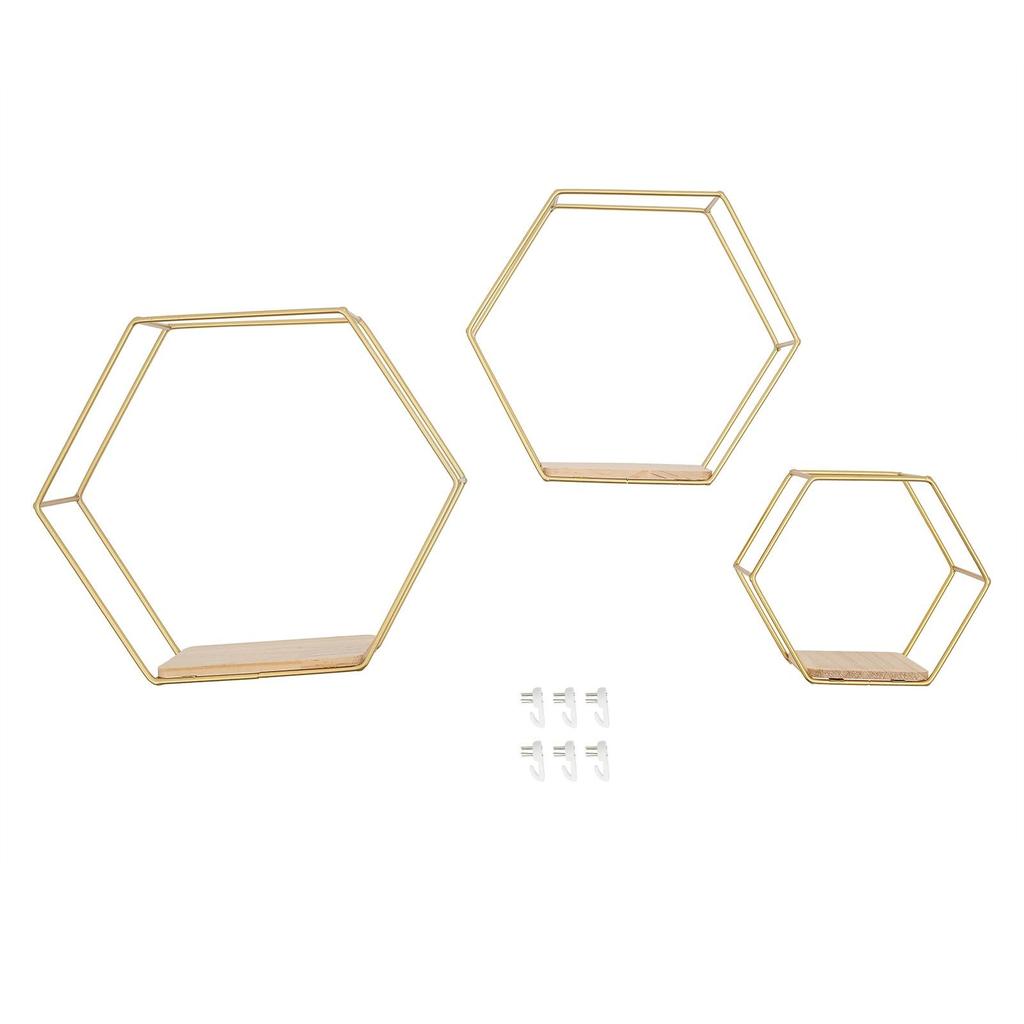 Hexagon Wall Shelf 3 Hanging Shelves, Loft Wall Shelf ShelvesIron & Wood Floating Shelves for Living Room, Bedroom, Kitchen