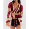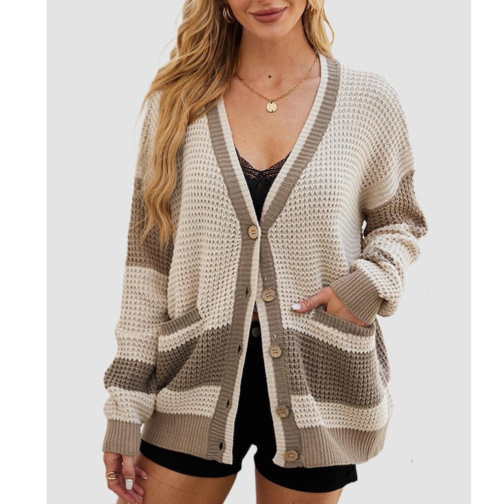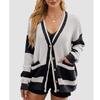 Женская повседневная трикотажная куртка с карманом и цветными блоками, кардиган, свитер, свободная куртка