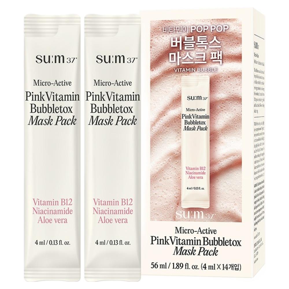 Transform your skin with the su:m37 Micro-Active Pink Vitamin Bubble-Posh Mask. This innovative wash-off mask generates fine, dense oxygen bubbles upon contact with the skin, deep-cleansing pores and removing micro-impurities. Infused with a potent Pink Vitamin complex and fermented ingredients, it revitalizes dull skin, providing an instant brightening effect and a burst of energy for a clear, rosy, and radiant complexion.