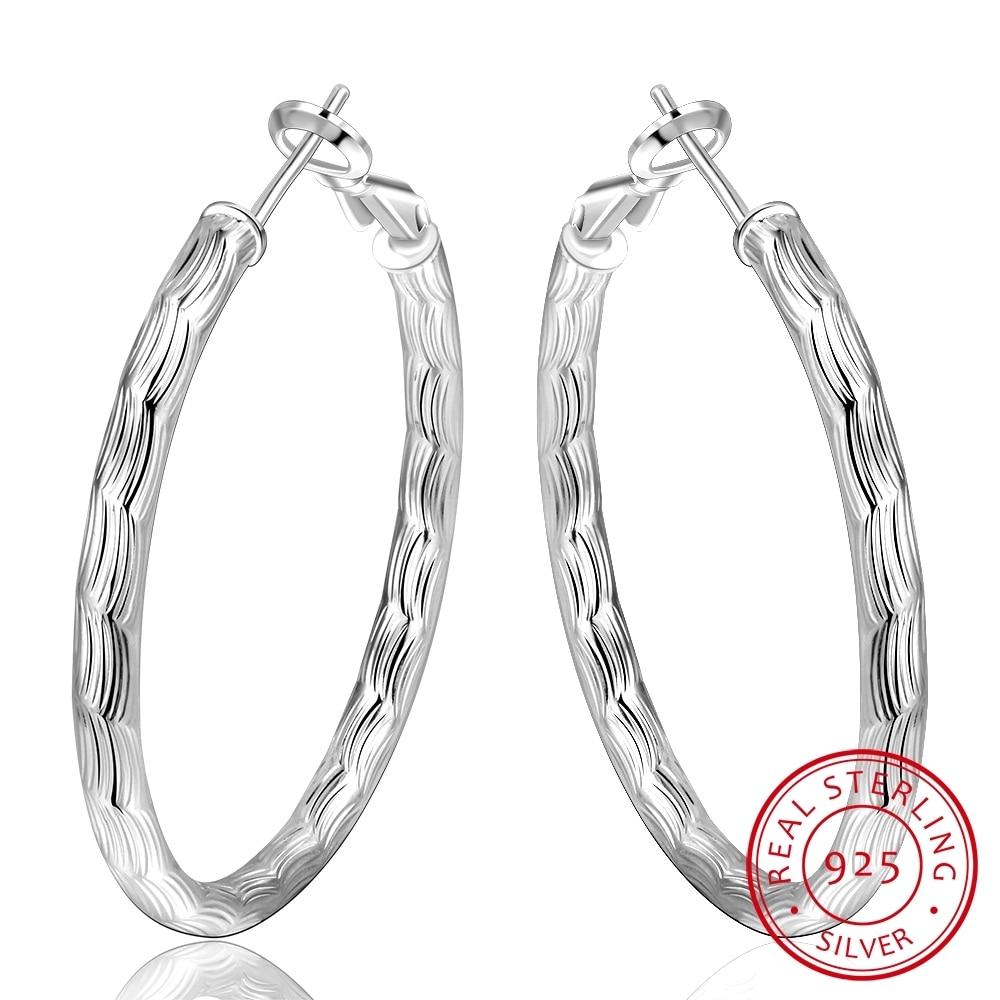 Genuine Real Pure Solid For Women Color Round Hoop Earrings Fine Jewelry Large Round Female Earrings Present GiftRound Jewelry — купить товар онлайн с бесплатной доставкой по всему миру!