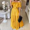 Women's Summer Long Dress New Fashion Solid Color Ruffled Strapless Puff Sleeve Vacation Dress Women Elegant Off Shoulder Sexy A Line Female Dresses