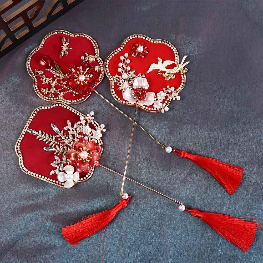 Мини-китайский веер с кисточками и подвеской, китайский шелковый веер для свадебной группы, китайский свадебный веер