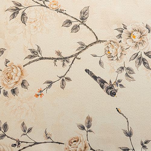 1. Ретро-пасторальный стиль с принтами цветов и птиц, на нежном кремово-абрикосовом фоне, излучающий ощущение легкой роскоши, мгновенно наполняющий пространство ретро-художественной атмосферой.