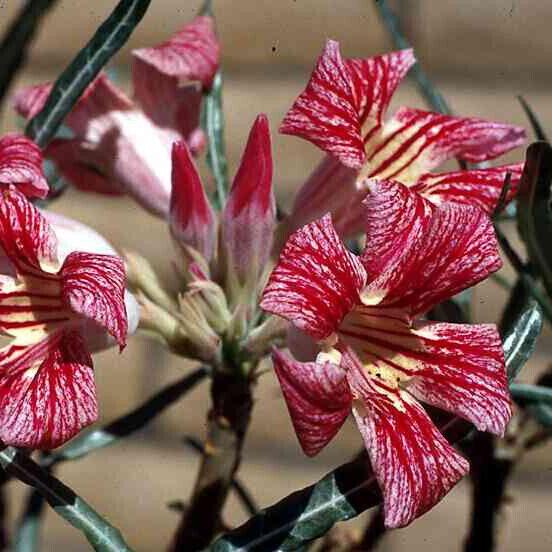 L’Adenium , è una nuova interessante pianta da appartamento caratterizzata da uno stelo rigonfio che può crescere fino alla misura di 2 metri di altezza, anche se di solito la si trova a partire da un altezza di 20-40 cm."Rosa del Deserto"