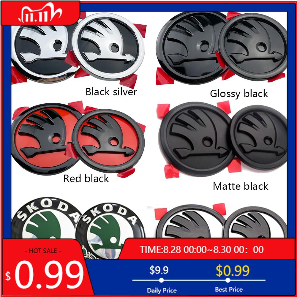 Car Sticker 2Pcs 80mm 90mm Emblem For Skoda Fabia 1 2 Octavia a7 RS Superb Rapid Yeti Karoq Vision Car Head Front Rear Boot Tail — купить товар онлайн с бесплатной доставкой по всему миру!