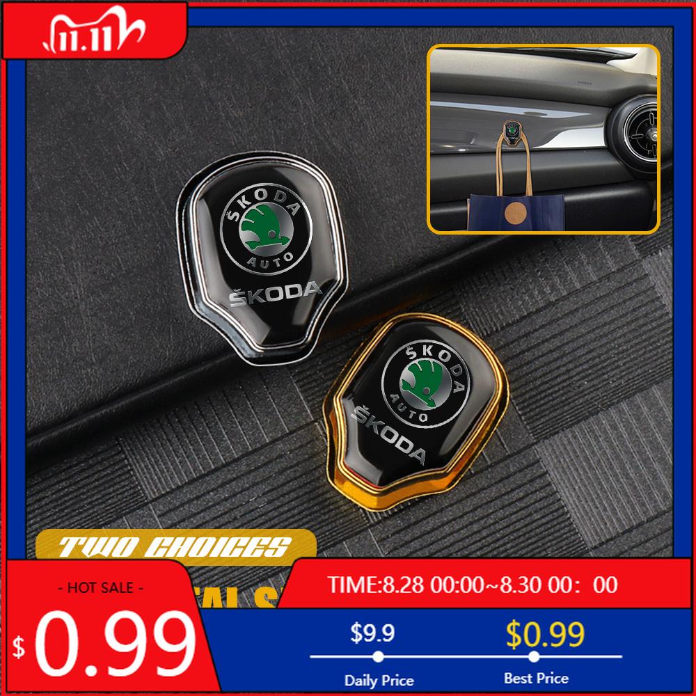 Car Sticker 1/2pcs Metal Car Hook Hanger Handbag Sticker Decor Accessories For Skoda Octavia Fabia Rapid VII Yeti Enyaq Kodiaq S