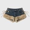 ZYLLO Новые Женские Ретро Дизайн Пушистые Сшитые Джинсовые Шорты Y2k Низкая Посадка На Бретельках Узкие Горячие Штаны