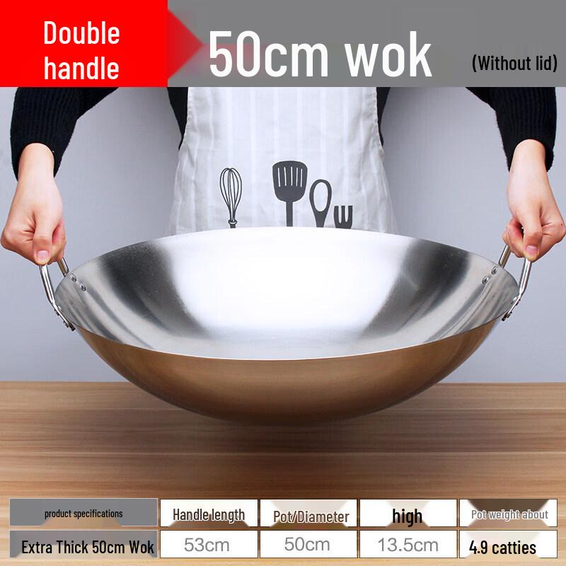 Homeglen Extra-Thick Stainless Steel Double-Handle Round Bottom Wok — купить товар онлайн с бесплатной доставкой по всему миру!