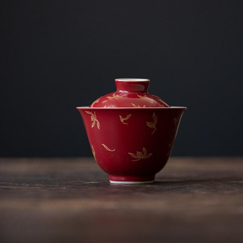 Red Ceramic Teacup Porcelain Tea Tureen Handmade Orchid Bowl Chinese Kung Fu Gongfu Gaiwan Retro Teaware Drinkware Tea Ceremony