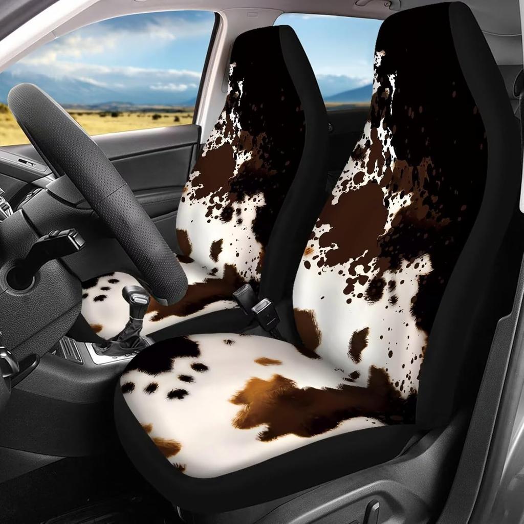 Brown Cow Print Car Seat Covers, 4 Pcs Car Front Seats and Rear Bench Cove, Universal Elastic Vehicle Seats Cushion Automotive Interior Protection — купить товар онлайн с бесплатной доставкой по всему миру!