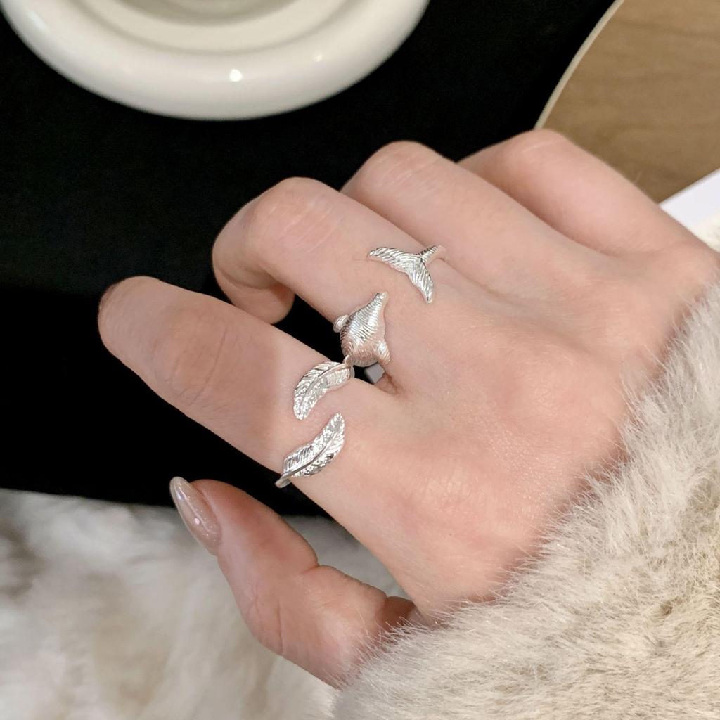 Adjustable Sweet Dolphin Feather Ring: Stylish Women's Fashionable Open Design, Perfect for Niche Versatile Index Finger Wear. — купить товар онлайн с бесплатной доставкой по всему миру!