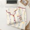 Женский пижамный комплект из облачного хлопка в желтую клетку с отделкой по краю в виде ракушек - С длинным рукавом, для дома на весну/осень, с ощущением высокого качества.