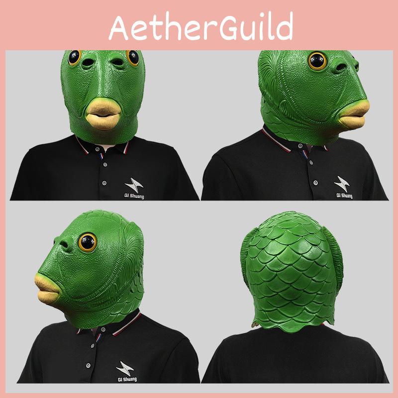 Очаровательная маска головы зеленого монстра-рыбы для веселых костюмированных вечеринок и празднования Хэллоуина