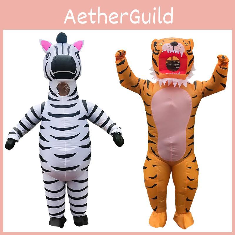 Уморительный надувной костюм тигра-зебры для взрослых, идеально подходящий для Хэллоуинских вечеринок