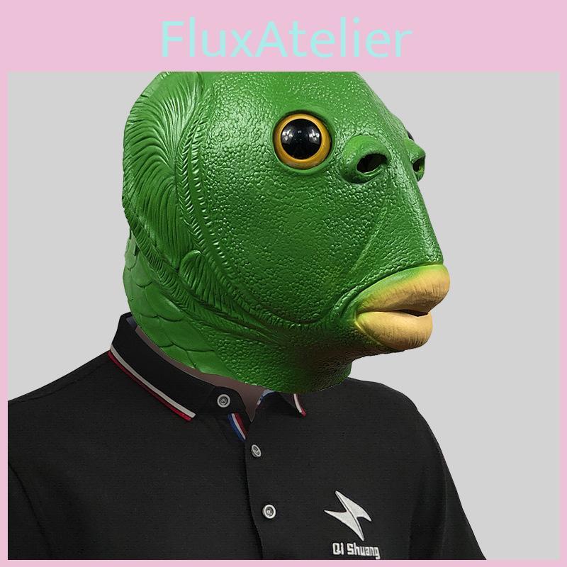 Очаровательная маска головы зеленого монстра-рыбы для веселых костюмированных вечеринок и празднования Хэллоуина