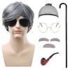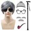 Аутентичный костюм дедушки с серым париком, аксессуарами для бороды и тростью для праздничных торжеств