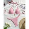 Розовый текстурированный треугольный бикини-комплект с подвеской, стринги, купальник из двух частей