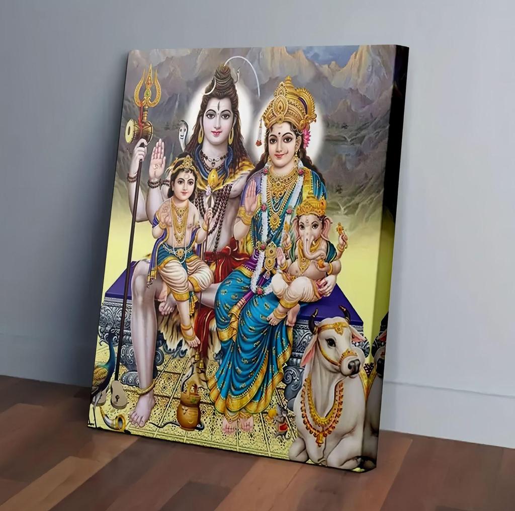 Hindu Elephant God Temple Hanging: High-Def Decorative Canvas Painting for Living Room or Corridor
