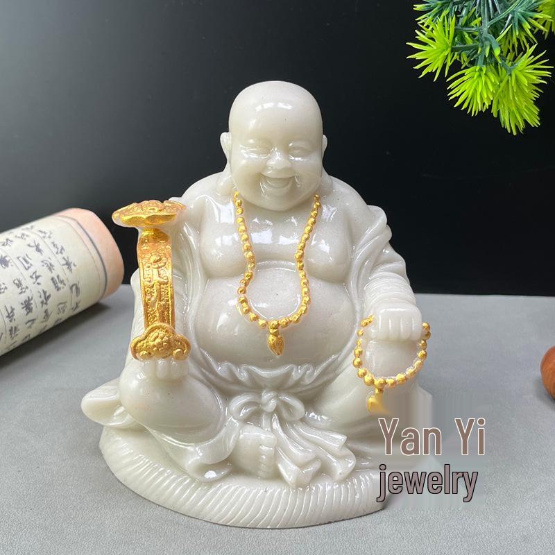 Ivory White Maitreya Laughing Buddha Tea Pet Ornament for Desktop or Car Feng Shui Decor