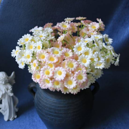 Доступные в нескольких насыщенных оттенках, включая молочно-белый, светло-розовый, теплый оранжевый и ярко-желтый, эти цветы можно размещать по отдельности или комбинировать, чтобы дополнить различные стили интерьера, такие как скандинавский, японский и деревенский.. Очаровательный дизайн с ромашками, мелкими круглыми лепестками и ярко-желтыми серединками придает свежую, целительную атмосферу любому пространству.
