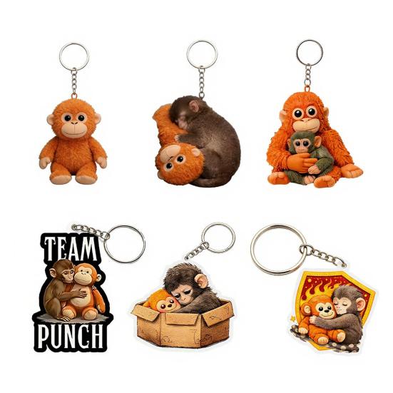 6Pcs Keychain Pendant I Love Protect Punch Monkey Charm Key Chain Easy to Carry Key Organizer Backpack Bag Accessories