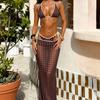Шикарный пляжный комплект из трех предметов: парео в горошек с юбкой с разрезом на шнуровке для лета