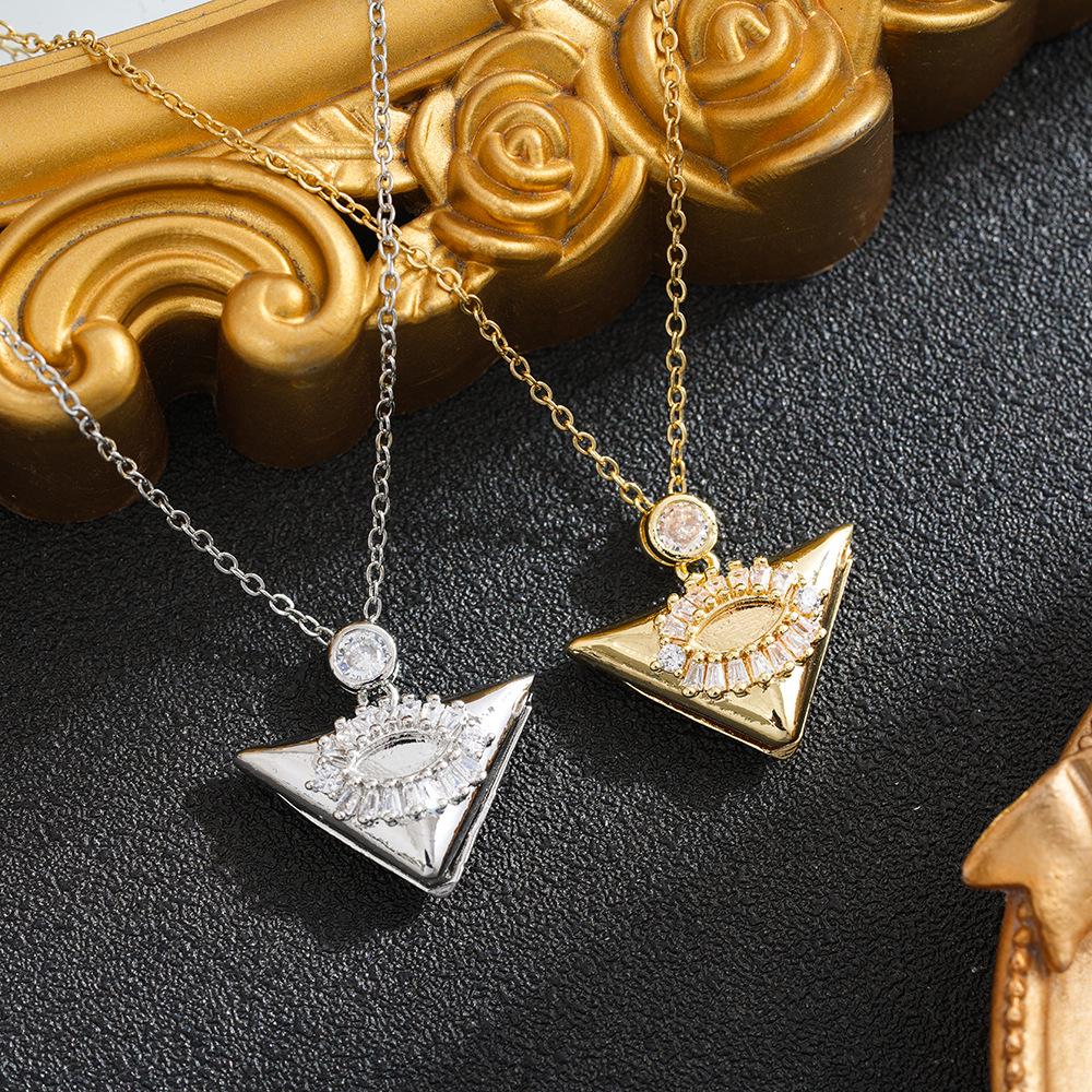 Titanium Steel Two-Tone Triangle Eye Pendant Necklace for Women — купить товар онлайн с бесплатной доставкой по всему миру!