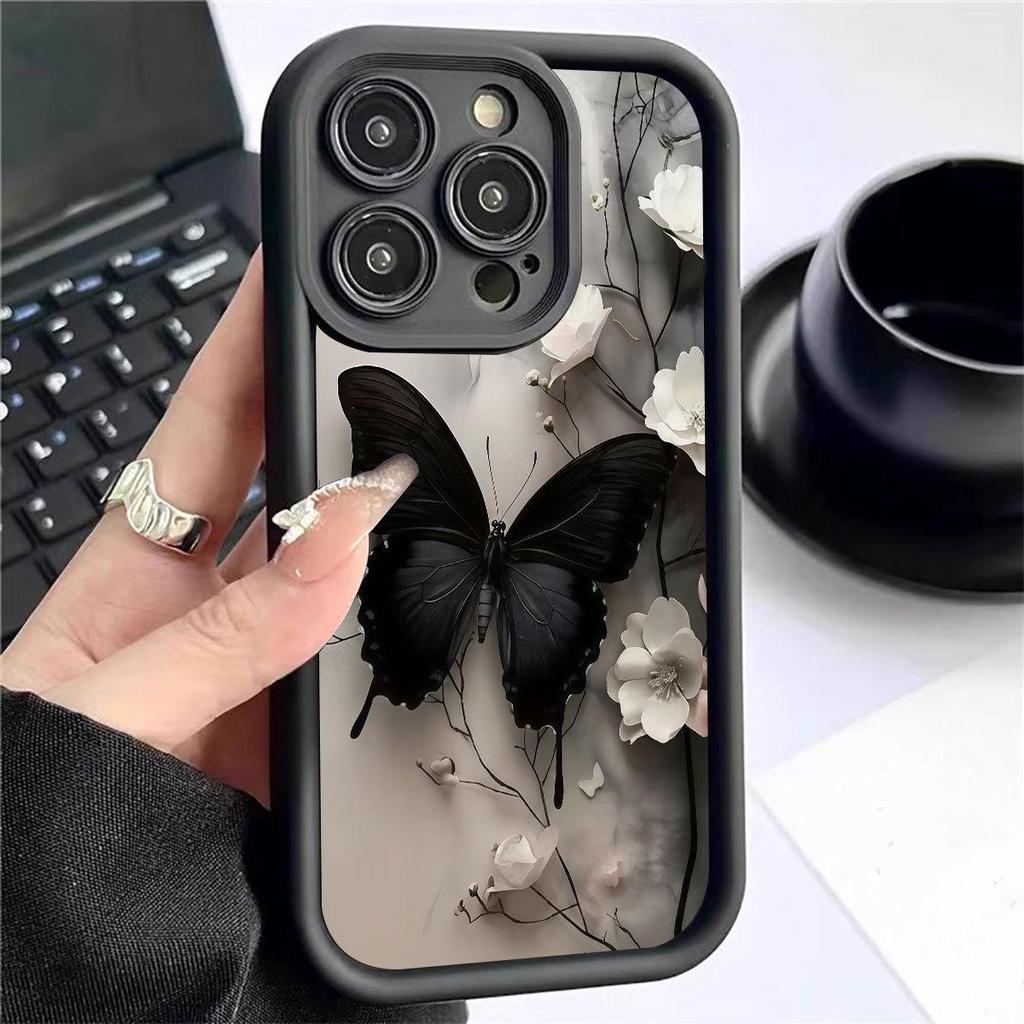 Черный Чехол-Грув с Бабочкой для iPhone 14-17 Pro Max
