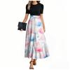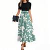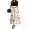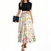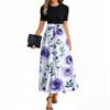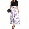 Женское элегантное модное повседневное платье с цветочным принтом и поясом, короткими рукавами и круглым вырезом