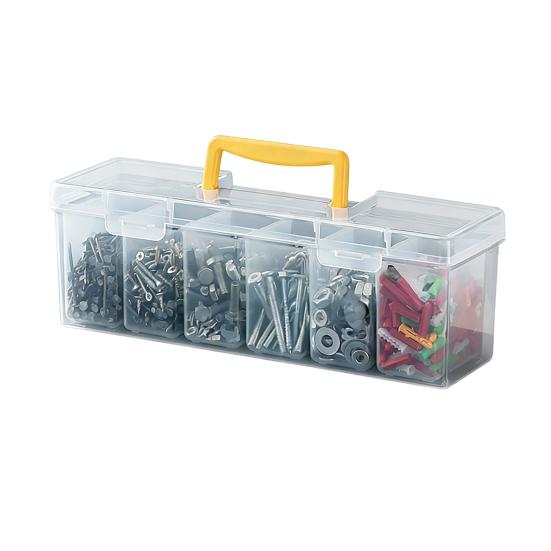 Характеристики: Прозрачный дизайн, Эргономичная ручка, Регулируемые отделения
