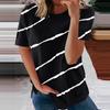 Женские повседневные модные пуловеры с коротким рукавом в полоску с принтом и круглым вырезом, футболки