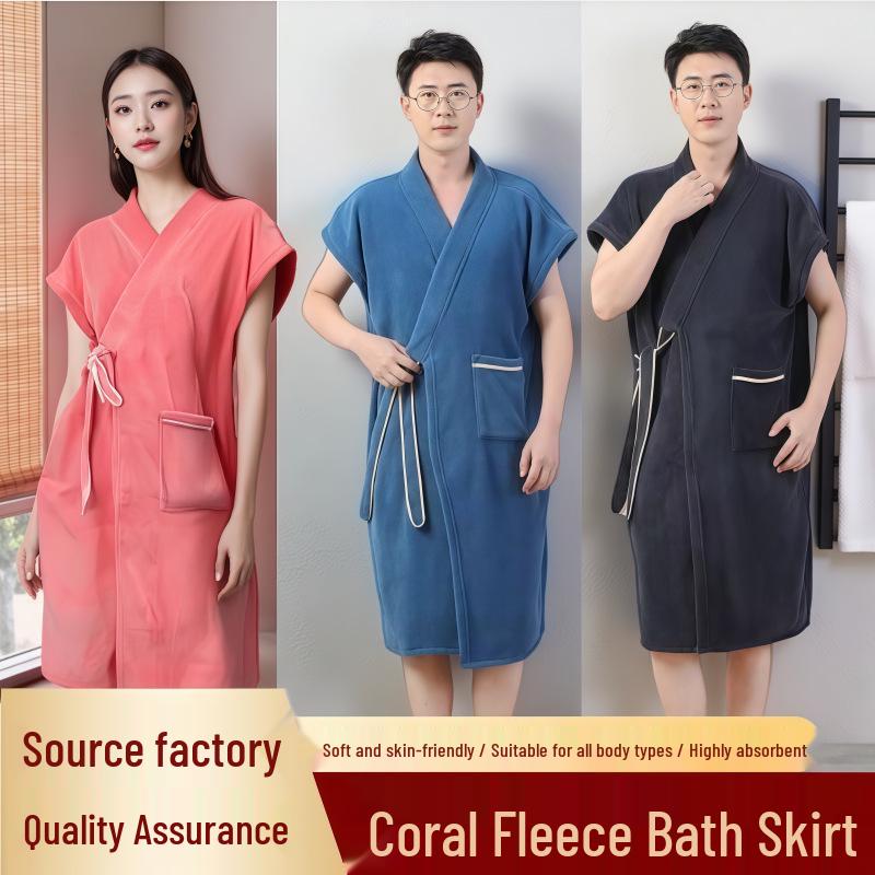 Унисекс Полосатый Впитывающий Халат-Полотенце - Короткий Рукав Пара для Мужчин и Женщин
