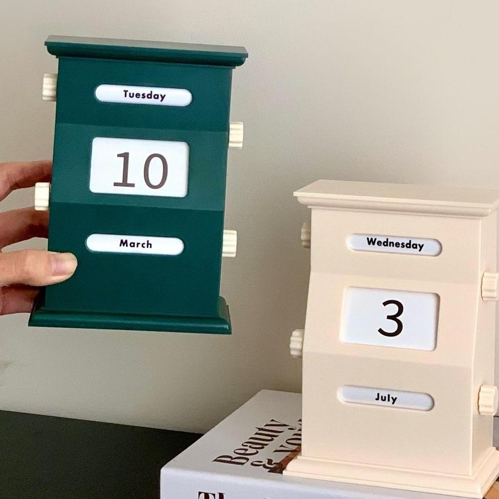 Retro Creamy Perpetual Desk Calendar: Creative Home & Office Decor, Photography Prop