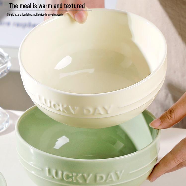 Набор из 2 больших креативных керамических мисок для лапши с рельефом, 6 дюймов - Бытовая миска для лапши быстрого приготовления, Утолщенная для долговечности