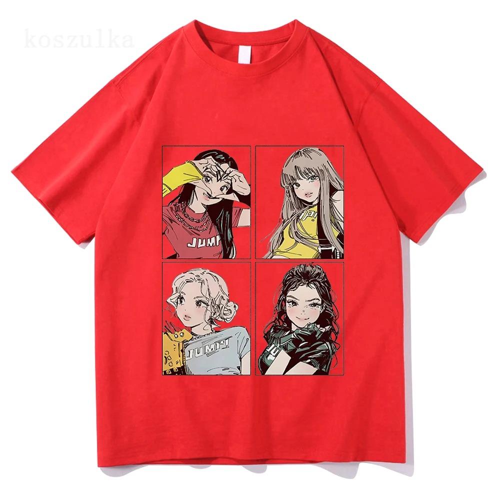 Панельная футболка в стиле K-pop с изображением аниме-девушек (квартет), Унисекс футболка JUMI с графическим принтом в уличном стиле, Повседневная футболка с коротким рукавом, 100% хлопок