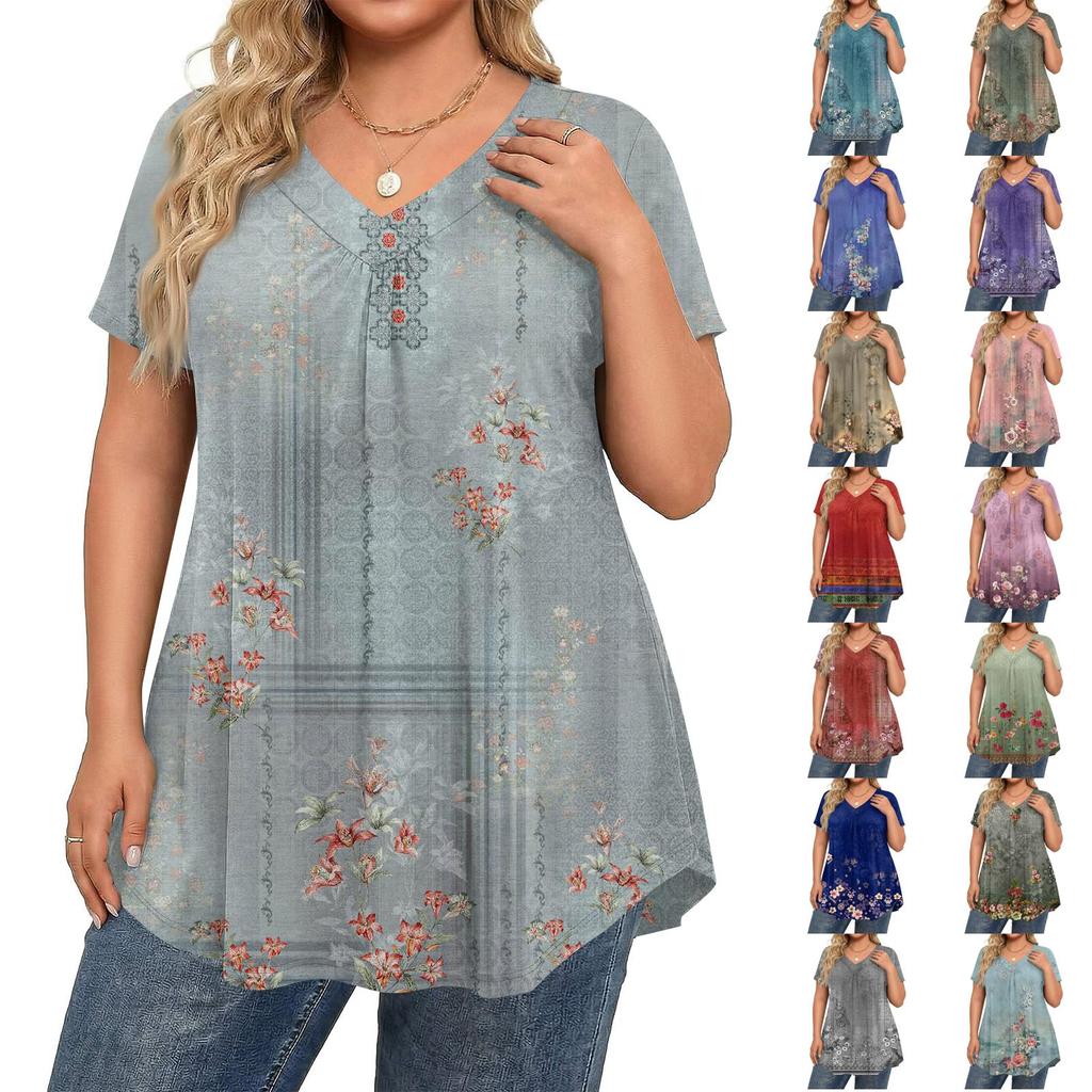Женская модная повседневная свободная блузка большого размера с коротким рукавом, элегантная с V-образным вырезом, для работы — купить товар онлайн с бесплатной доставкой по всему миру!