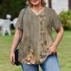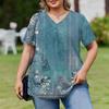 Женская модная повседневная свободная блузка большого размера с коротким рукавом, элегантная с V-образным вырезом, для работы