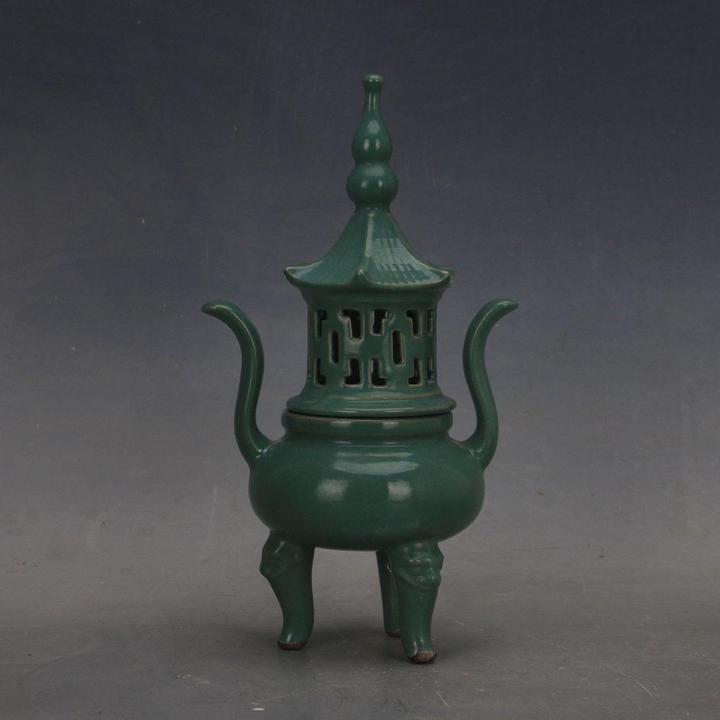 Handmade Liao Ru Kiln Green Glaze Double-Ear Incense Burner - Antique Porcelain Collectible — купить товар онлайн с бесплатной доставкой по всему миру!