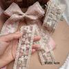 Бежевая вышитая кружевная тесьма-бант 4 см для аксессуаров для волос, украшений в стиле Лолита, декора букетов, рукоделия с лентами.